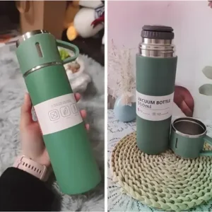 Hot and Cool Vacuum Flask Set 3Cup Set for Hot & Cold Drink 500 ml Flask green